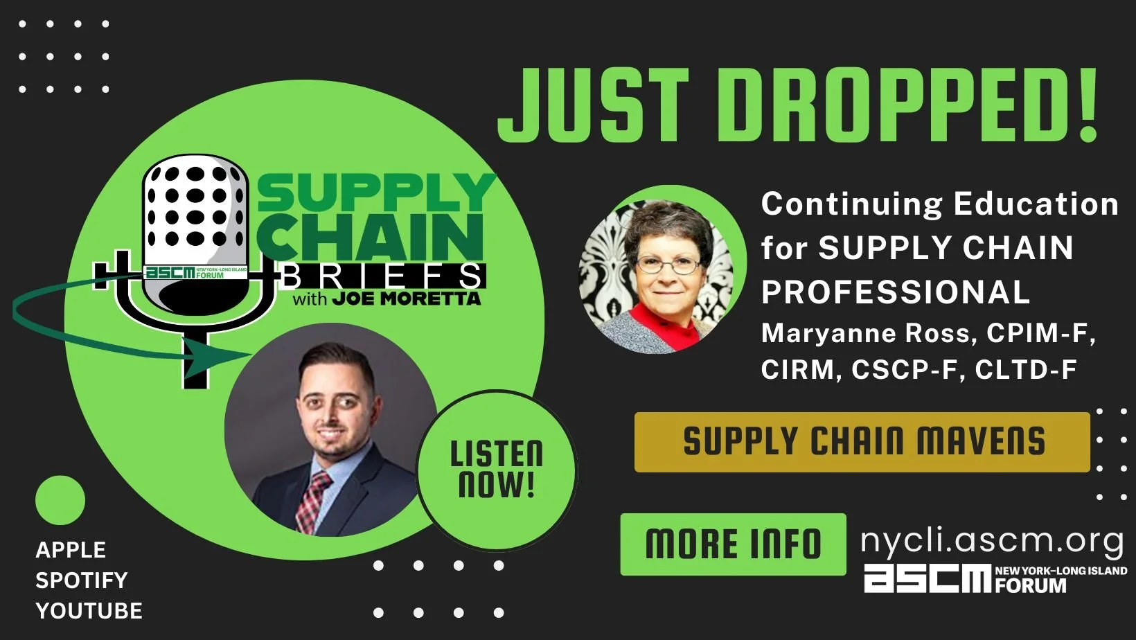 Check out the new episode of the Supply Chain Briefs podcast. In this episode, podcast host Joseph Moretta, ASCM New York City - Long Island Forum, interviews Supply Chain Mavens’ own Maryanne Ross on Continuing Education for Supply Chain Professionals. The episode includes an overview of the ASCM certification programs.
